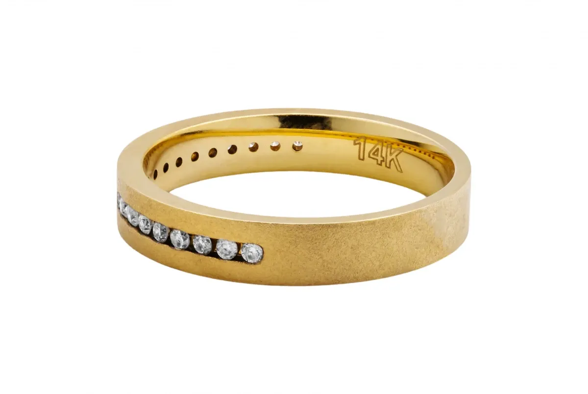 14ct Yellow Gold Satin Channel Set Diamond Wedding Band 0.50ct