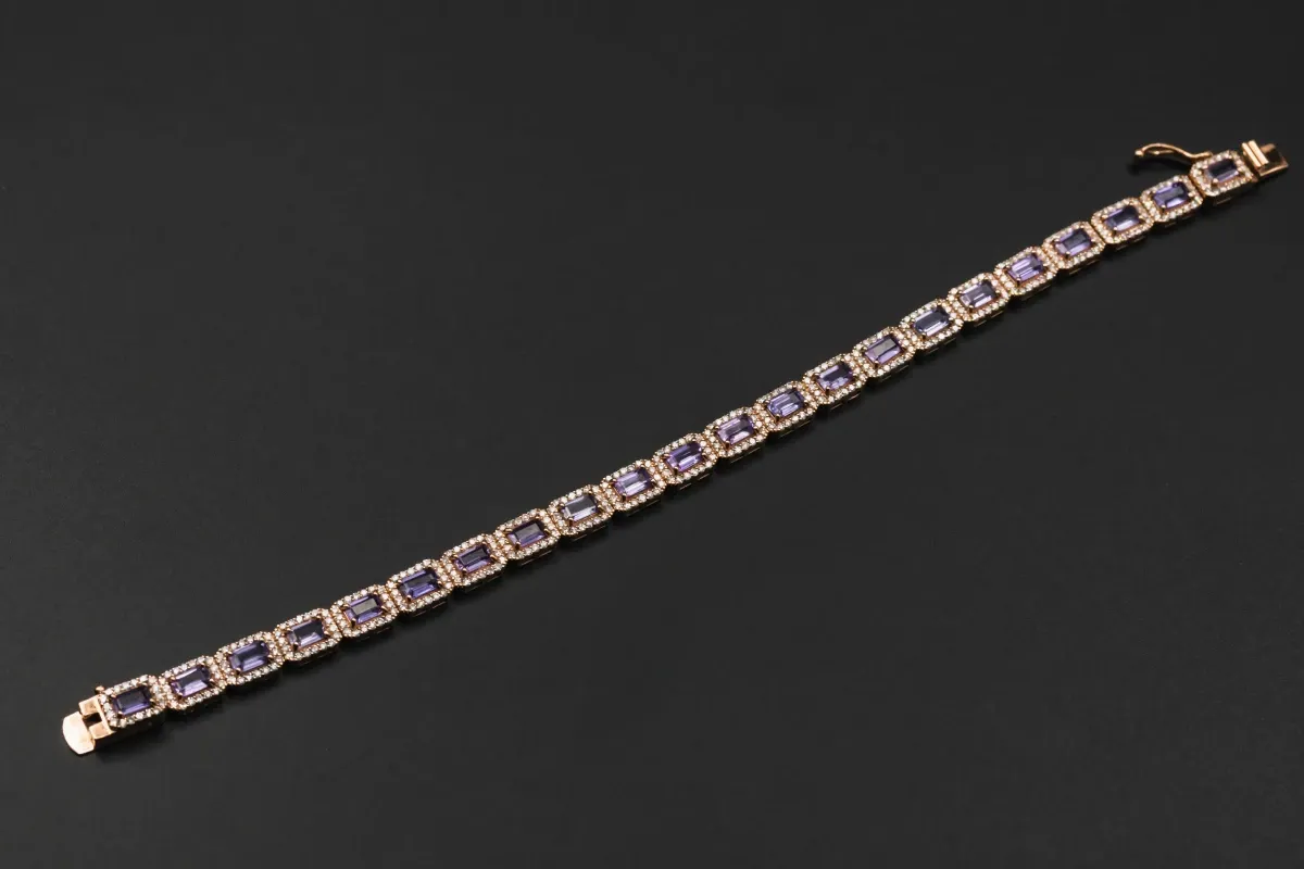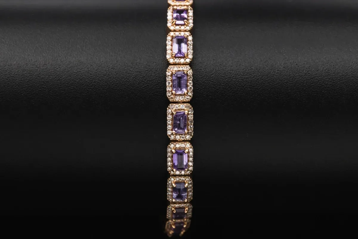 14ct Rose Gold Diamond Bracelet With Purple Sapphires 2.01ct