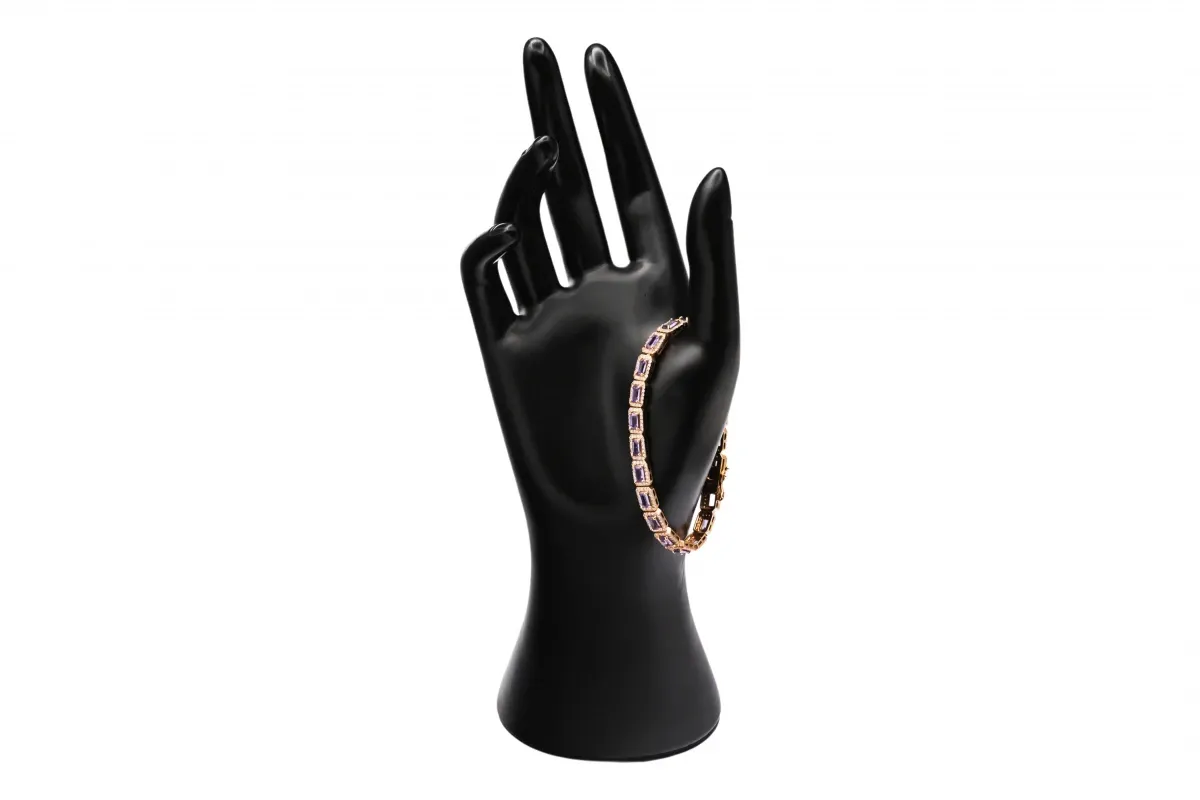 This exquisite 14ct rose gold bracelet is a captivating piece, featuring a stunning combination of 12.83ct purple sapphires and 2.01ct natural diamonds.