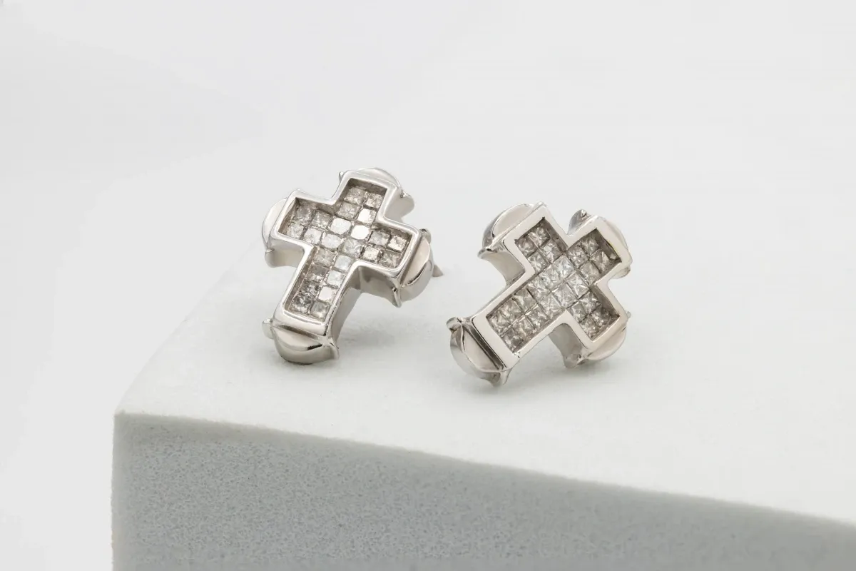 With a total carat weight of 0.75ct and Si2 clarity. The intricate cross motif adds a touch of religious symbolism, making them a meaningful accessory for any occasion.