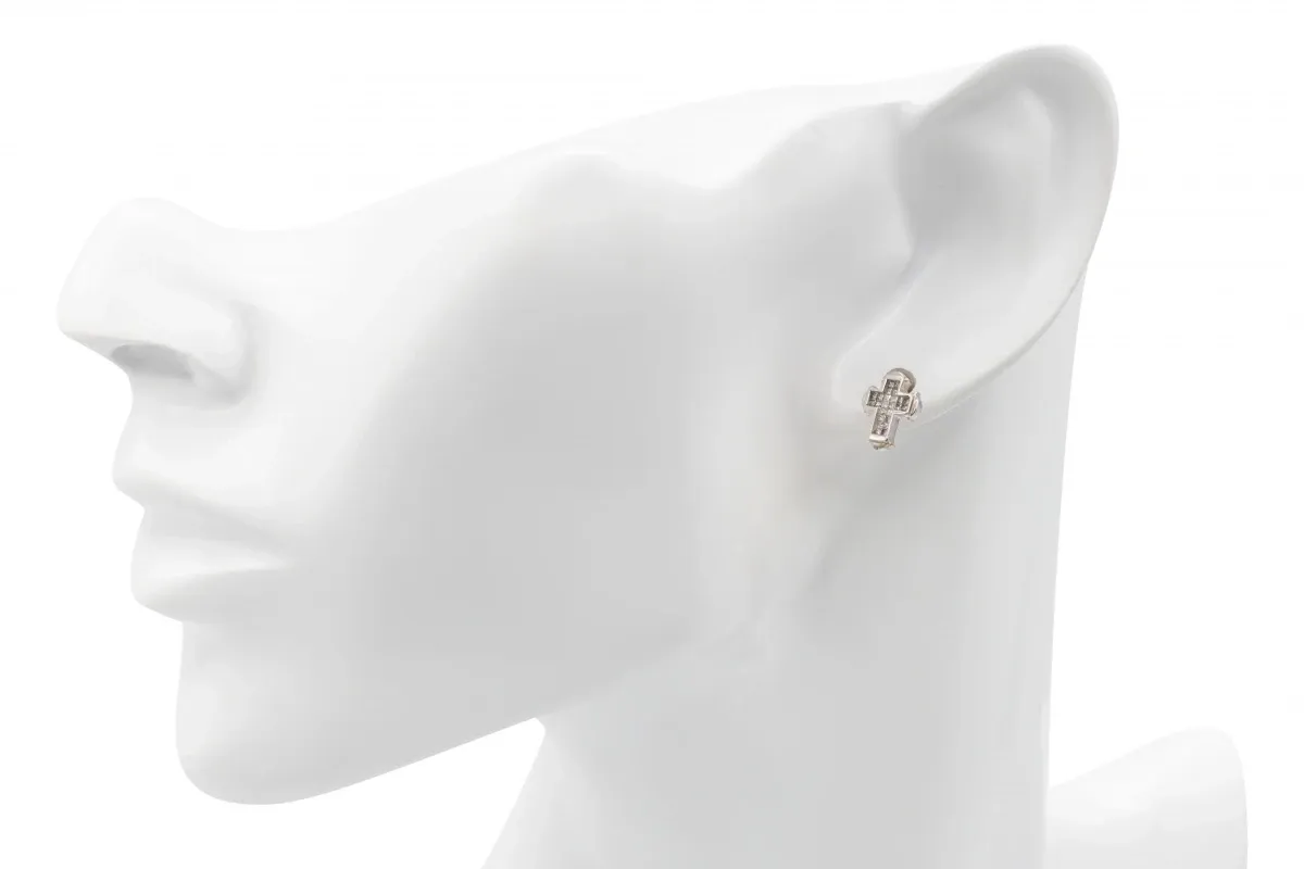 These elegant 14ct White Gold Diamond Earrings are crafted with meticulous attention to detail, featuring a stunning cross design adorned with sparkling diamonds.