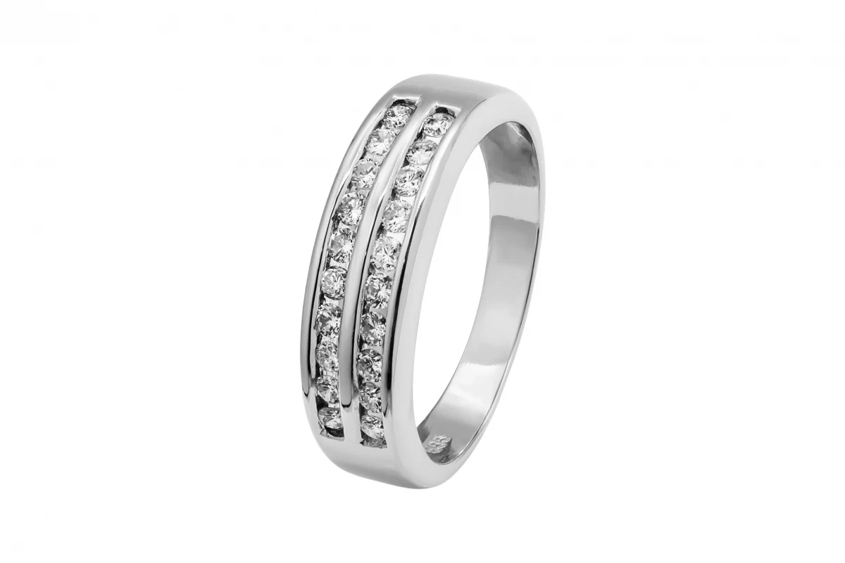 Crafted in 14ct white gold, this elegant ring features a double row design set with sparkling diamonds totalling 0.20ct.