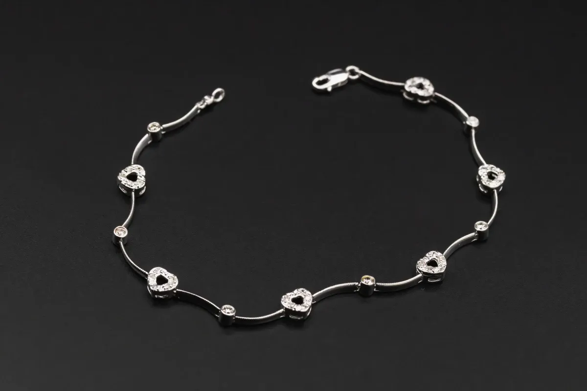 14ct White Gold Diamond Heart Bracelet 0.35ct 5.4g