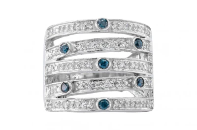 Featuring 0.50cts of black diamonds, 0.50cts of champagne diamonds and 0.25cts of white diamonds. The ring size is O.