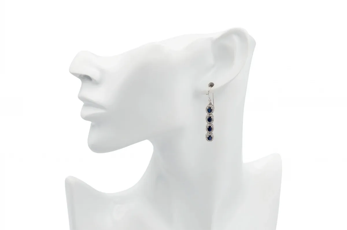 14ct White Gold Diamond And Sapphire Hanging Earrings 0.88ct