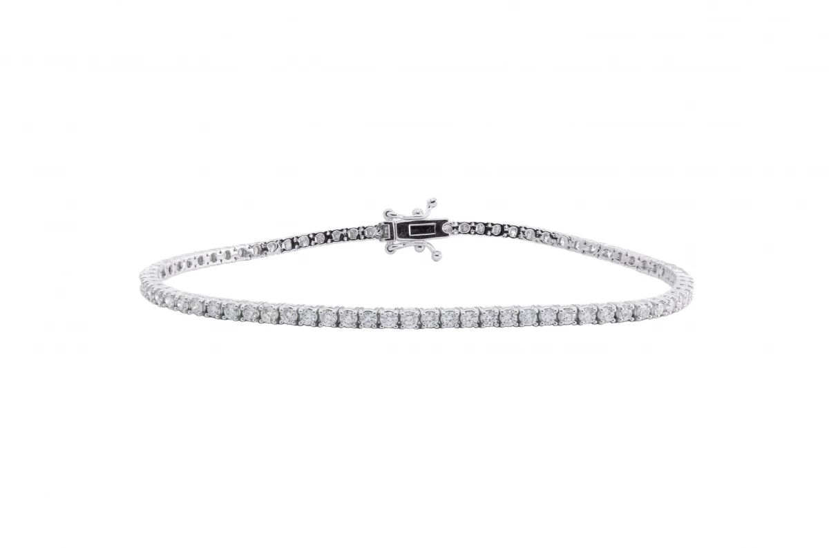 Crafted in 14ct white gold, this elegant tennis bracelet is set with 2.17ct of round brilliant cut diamonds, graded VS clarity for exceptional sparkle.