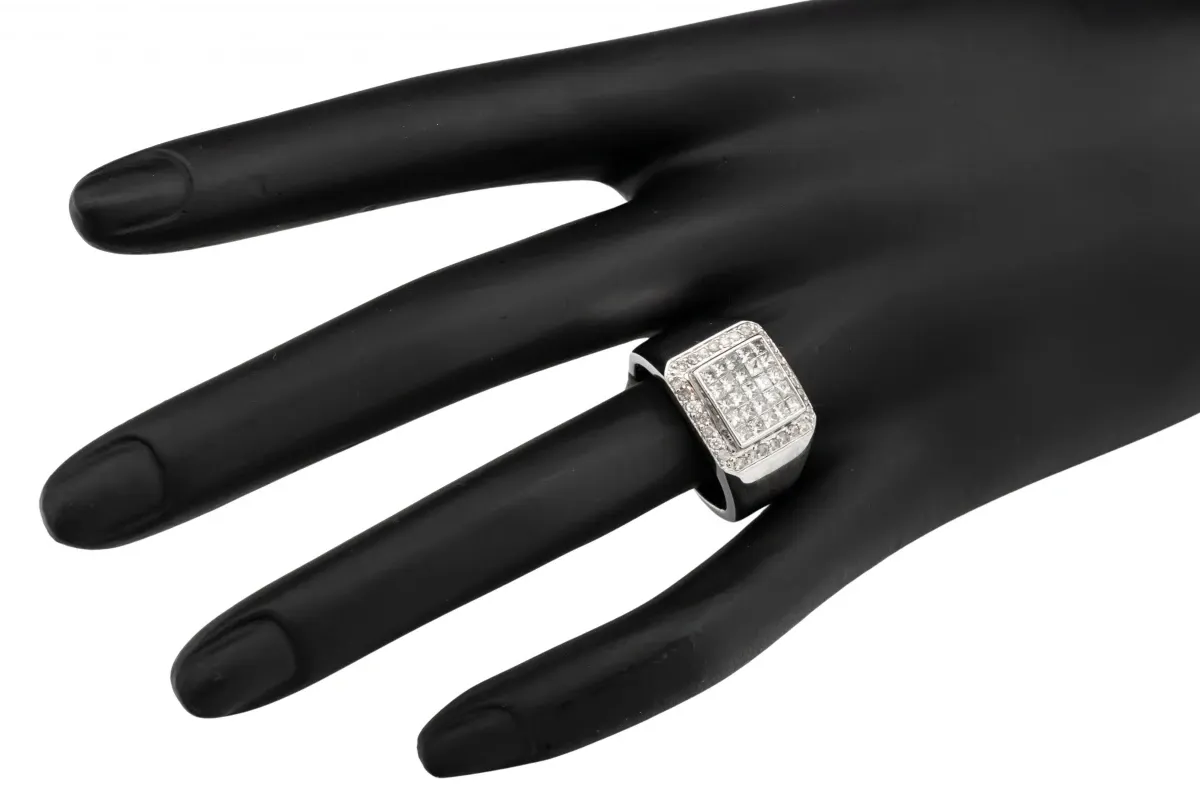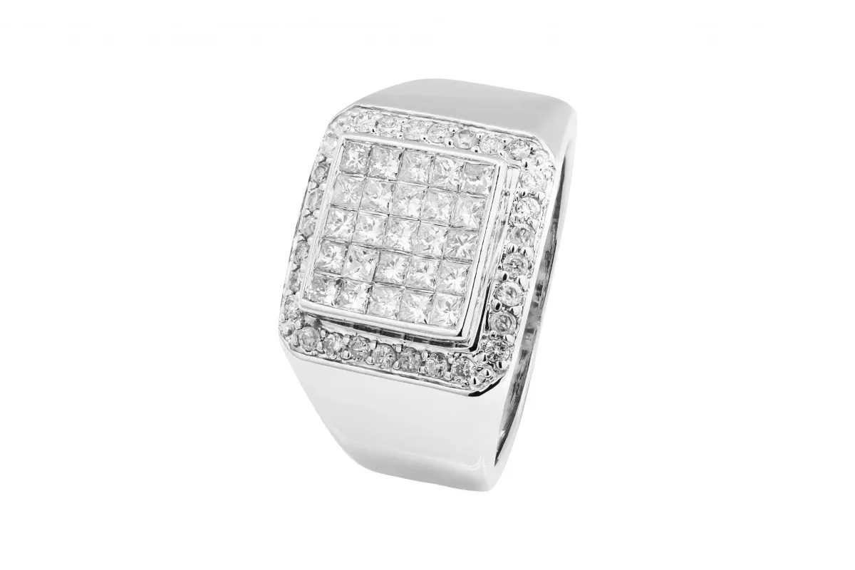 Crafted in solid 14ct white gold, this bold men's ring features 0.89ct of G SI quality diamonds for a refined yet powerful look.