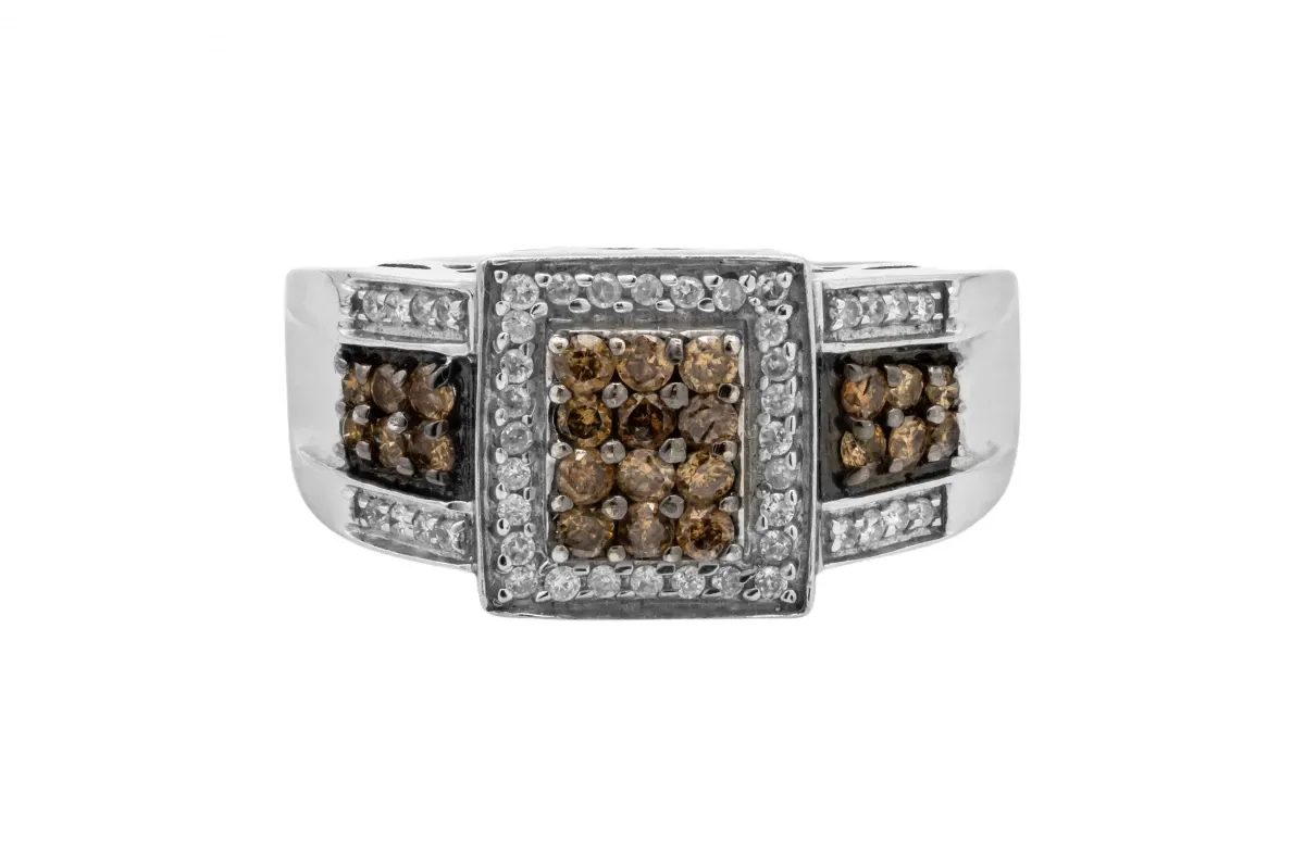 14ct White Gold Diamond Ring, a true masterpiece that seamlessly blends the sophistication of white diamonds with the warmth of cognac diamonds.