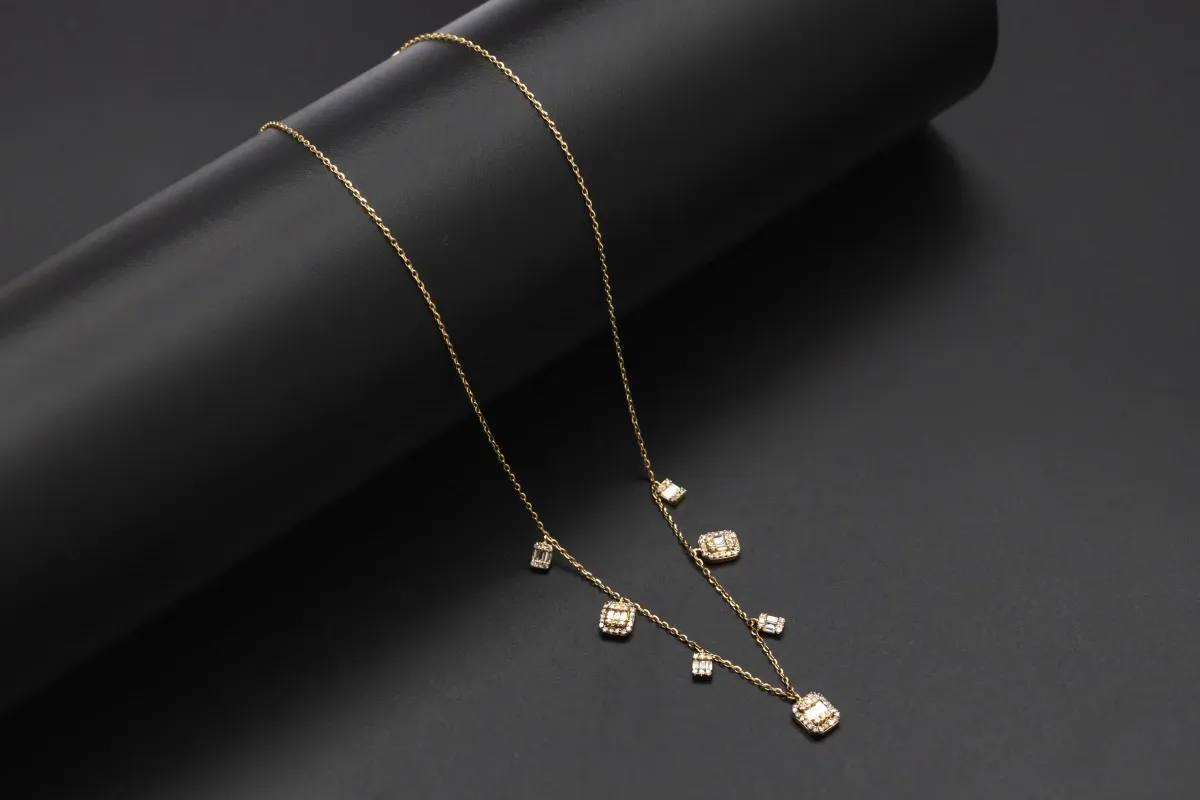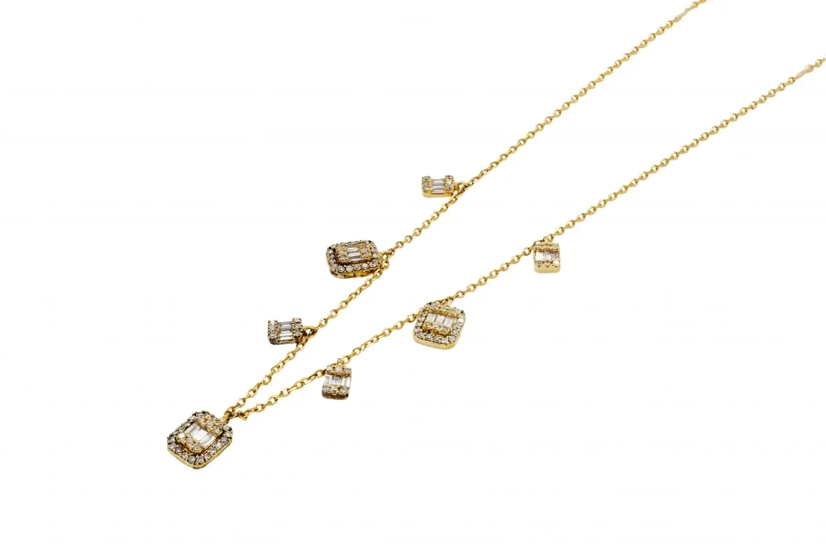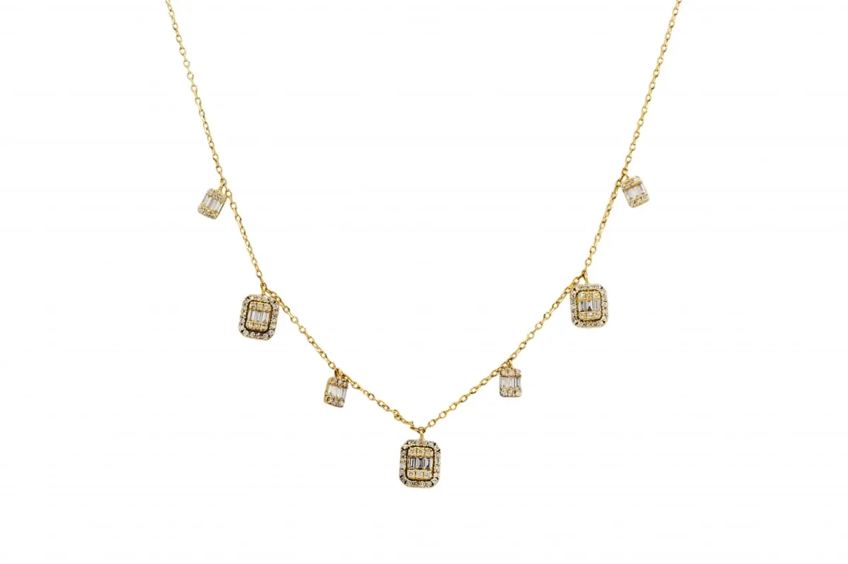 This necklace boasts a captivating arrangement of both brilliant-cut and baguette-cut diamonds, totaling 0.40 cts.