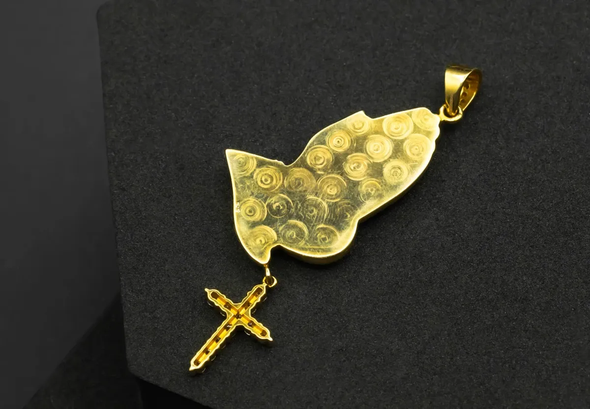 This unique religious pendant—a true masterpiece. Adorned with 3.16ct of natural white diamonds, it features a moveable cross with 11 solitaire diamonds.