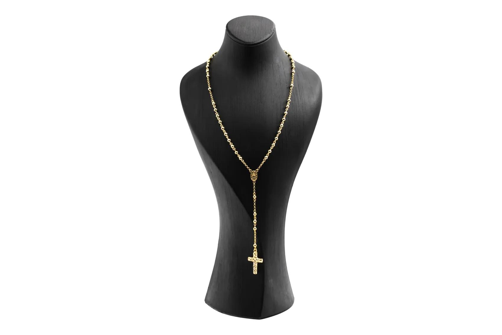 These elegant 14ct yellow gold rosary beads measure 32 inches in length and weigh 14.3g, offering a beautifully crafted and meaningful piece of fine jewellery. The rich 14ct gold beads provide a warm, luxurious shine, while the extended length adds graceful movement and versatility, allowing the rosary to be worn traditionally or styled as a statement necklace.