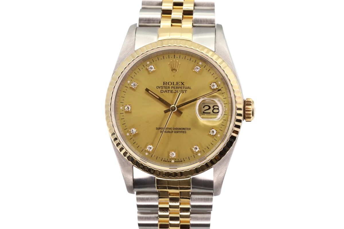 Rolex Datejust 36mm Stainless steel & 18ct Yellow gold, Champagne diamond dial.