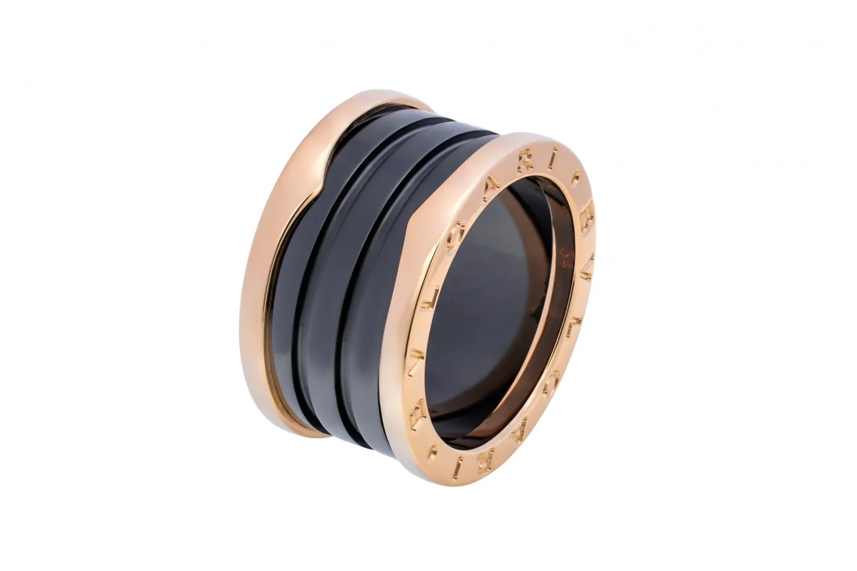 This striking Bvlgari B.zero1 four band ring is crafted in luxurious 18ct rose gold and contrasting black ceramic, creating a bold and instantly recognisable design. Weighing 9.7g and presented in size 54 (UK size M), the ring offers a confident, sculptural presence that reflects Bvlgari’s mastery of modern luxury.