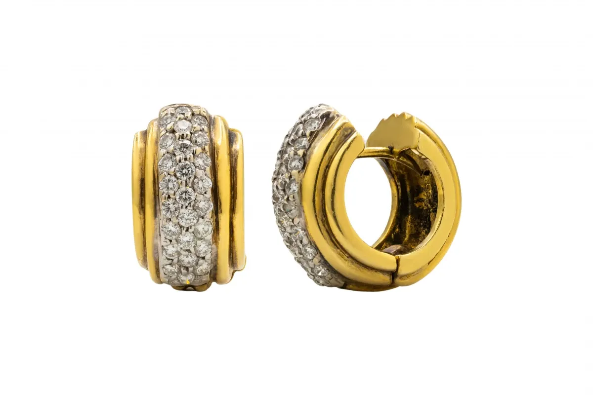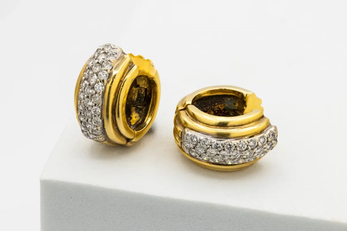 Indulge in luxury with these exquisite 18ct yellow gold heavy diamond huggie earrings.