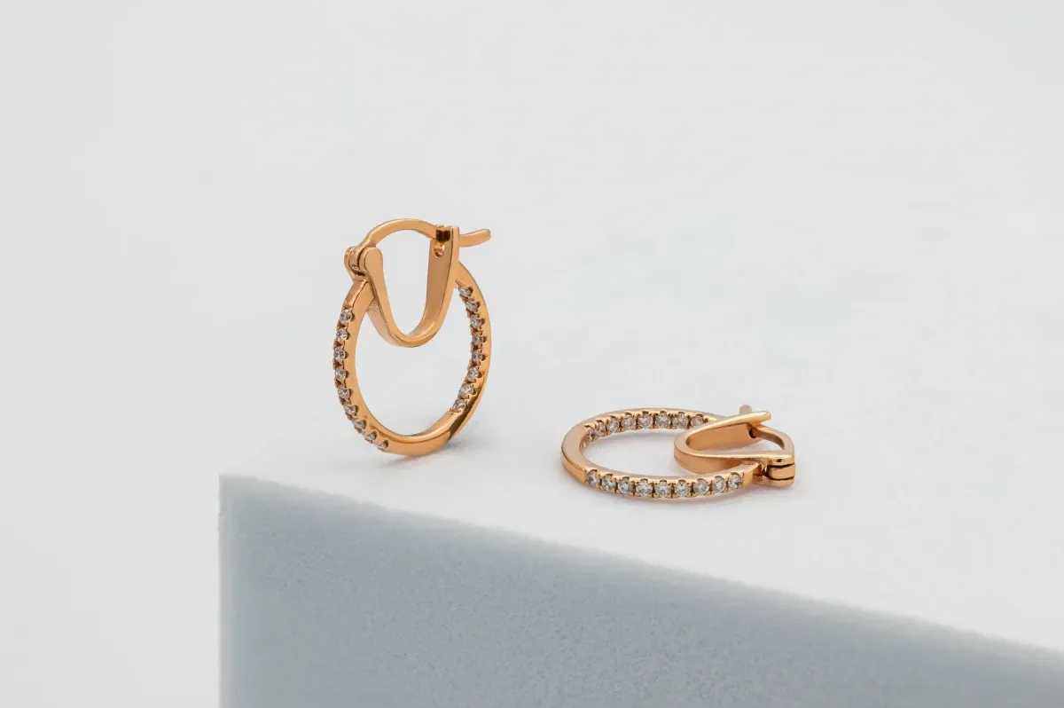 18ct Rose Gold Diamond Hoop Earrings