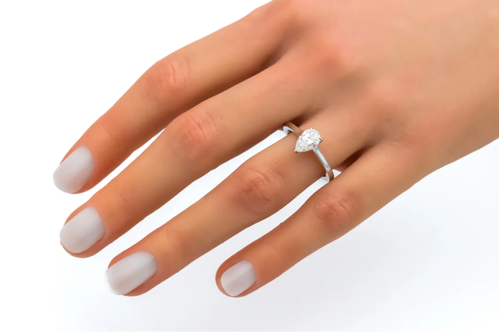The elegant pear cut combines timeless brilliance with graceful symmetry, creating a look that is both distinctive and refined. Weighing 3.2g and crafted in size L, this ring embodies sophistication and romance, making it the perfect choice for proposals, anniversaries, or as a treasured heirloom piece.