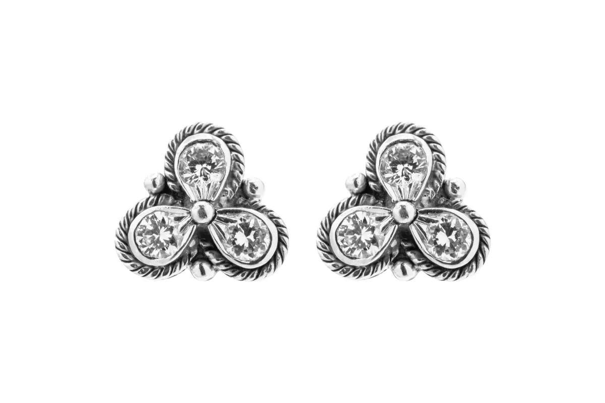 18ct White Gold Antique Design Diamond Stud Earrings 0.30ct 4.9g