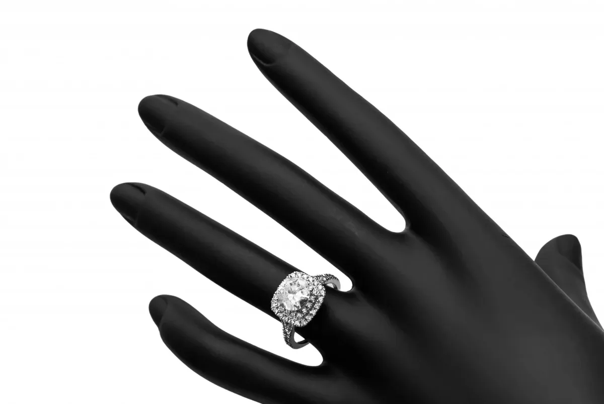 The halo design not only intensifies the centre stone’s presence but also offers a timeless silhouette that balances glamour with sophistication.