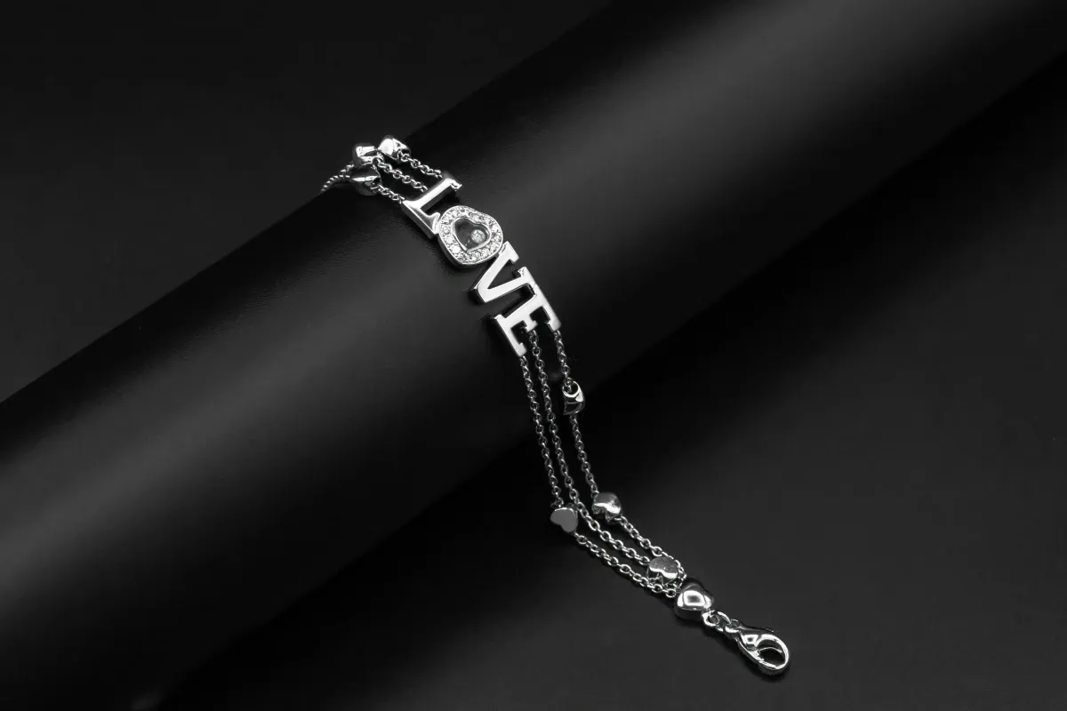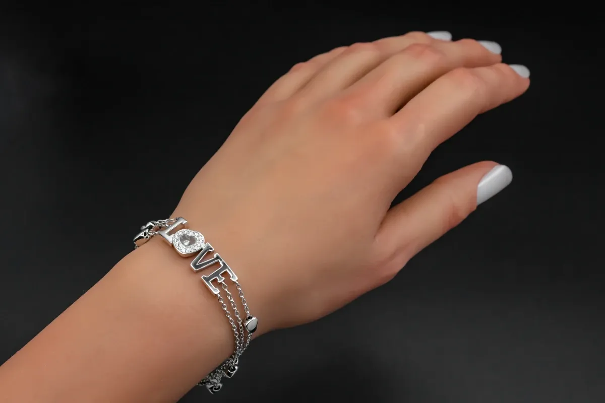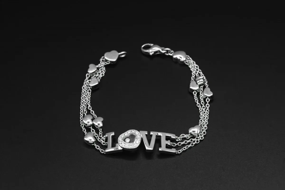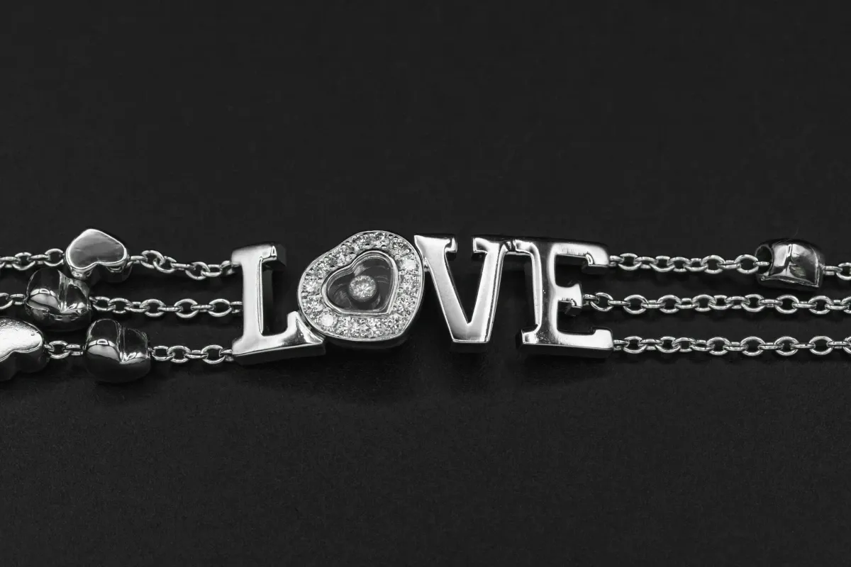 A stunning piece from Chopard’s iconic Happy Diamonds collection, this 18ct white gold bracelet features floating diamonds encased in signature heart-shaped windows.