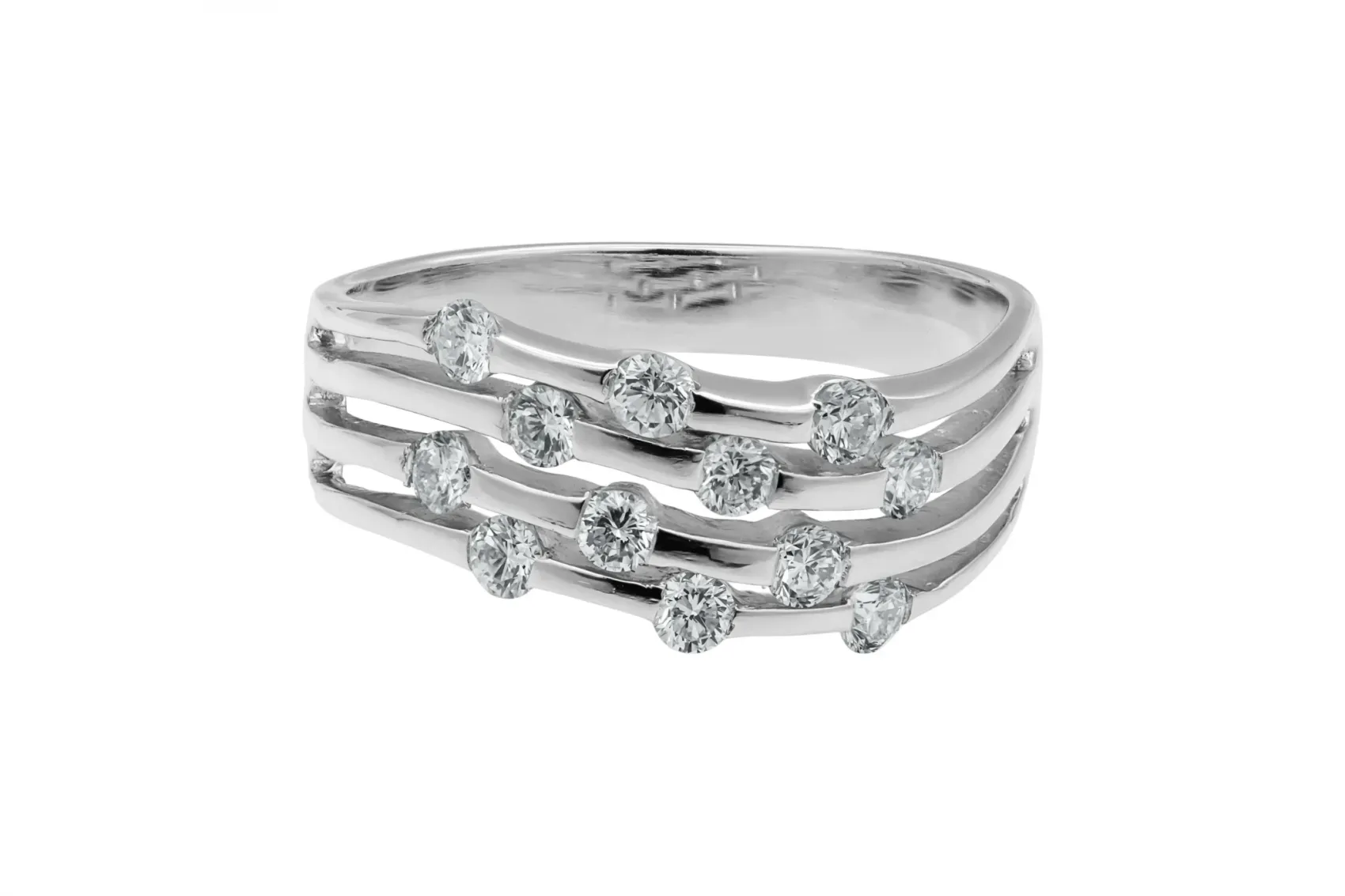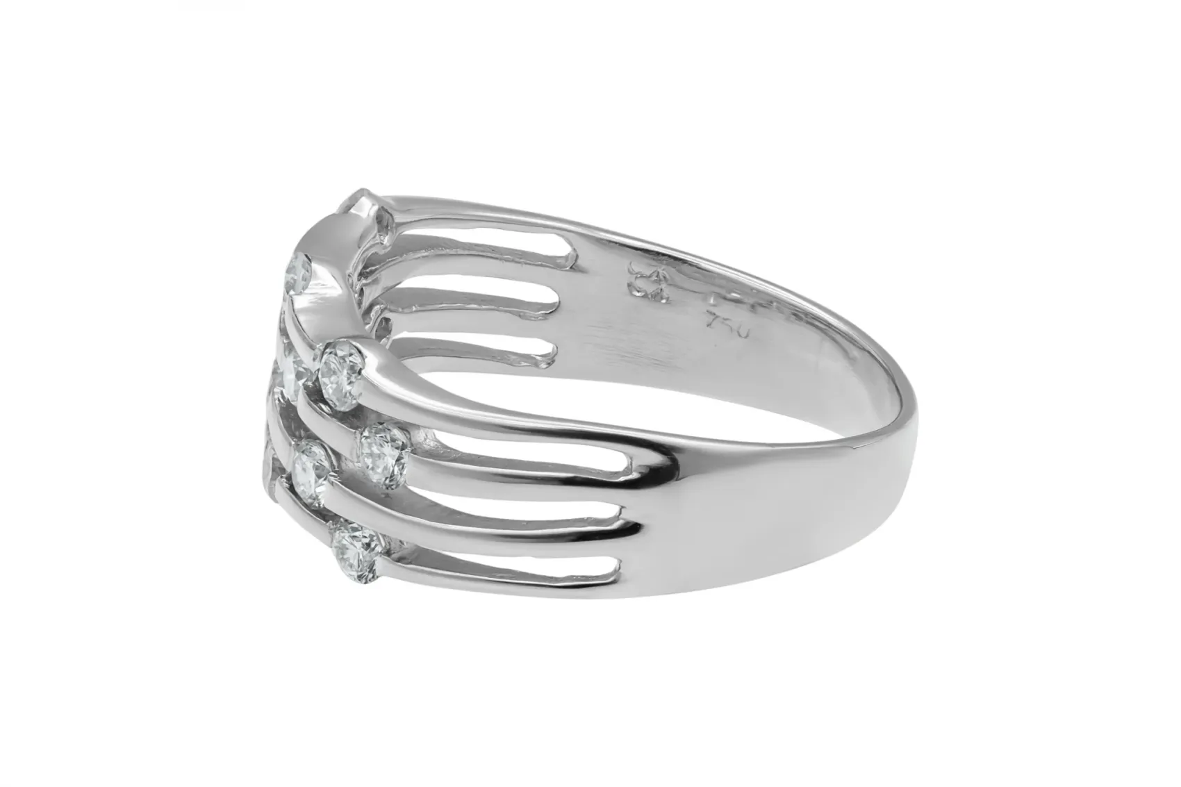This refined 18ct white gold ring features four rows of round brilliant cut diamonds totalling 0.60ct. Graded H colour with VS clarity, the diamonds are set to maximise sparkle and radiance across the band.