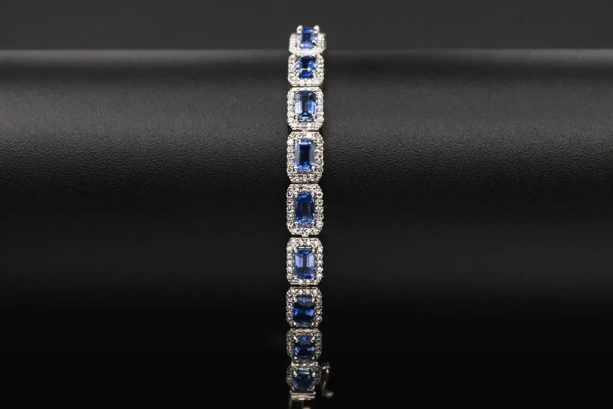 18ct White Gold Diamond And Sapphire Bracelet 1.90cts