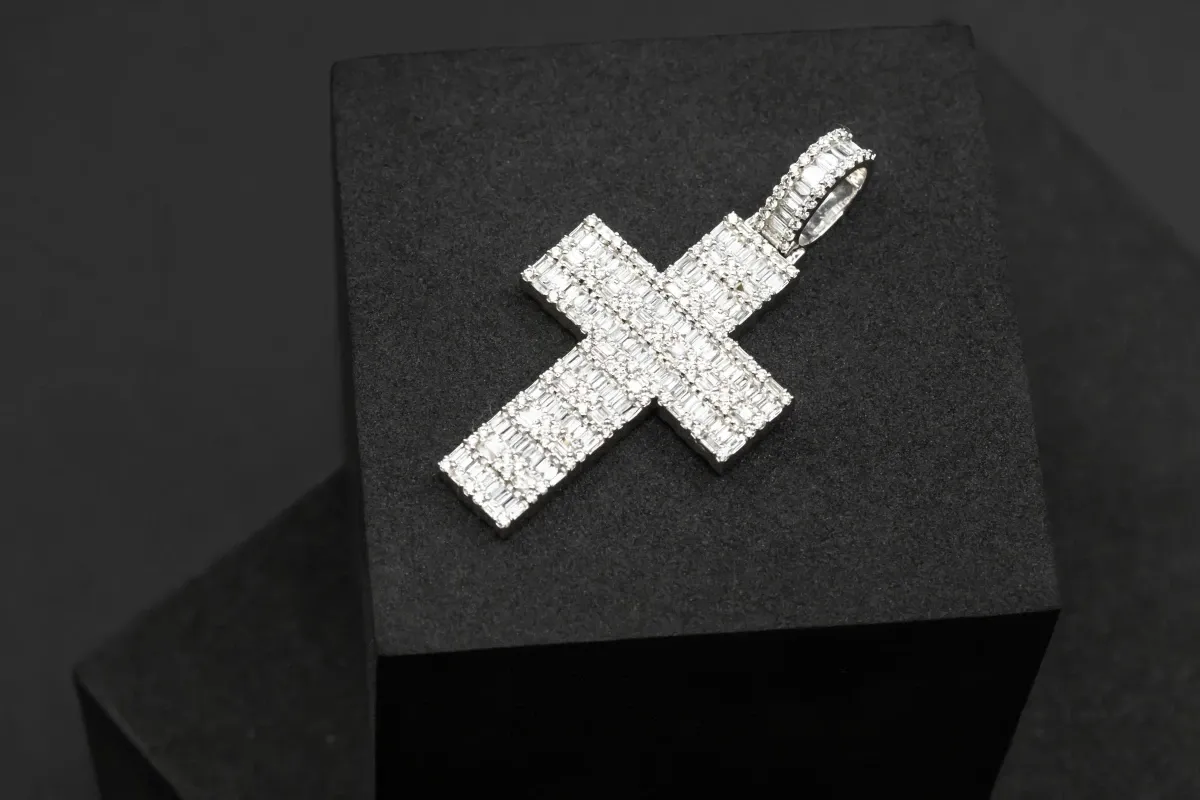 A stunning 18ct white gold cross shaped pendant set with round brilliant cut 1.58ct VS diamonds. On their own, diamonds are