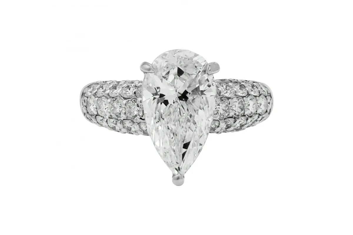 A truly spectacular 18ct white gold diamond engagement ring showcasing a breathtaking 3.07ct main diamond, perfectly complemented by 1.82ct of diamonds on the mount, for a total weight of 4.89ct.