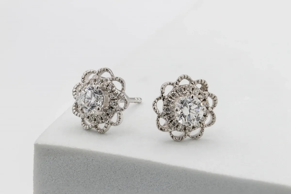 18ct White Gold Diamond Flower Studs 0.72ct 2.6g