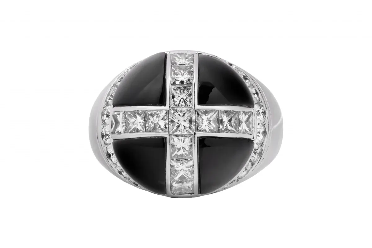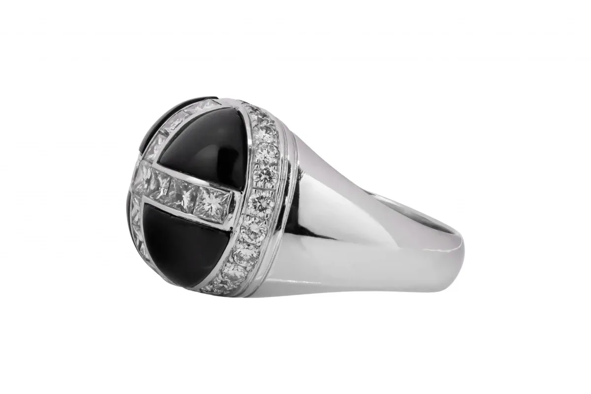 Garrard 18ct White Gold Diamond & Onyx Ring 1.62ct 13.1g