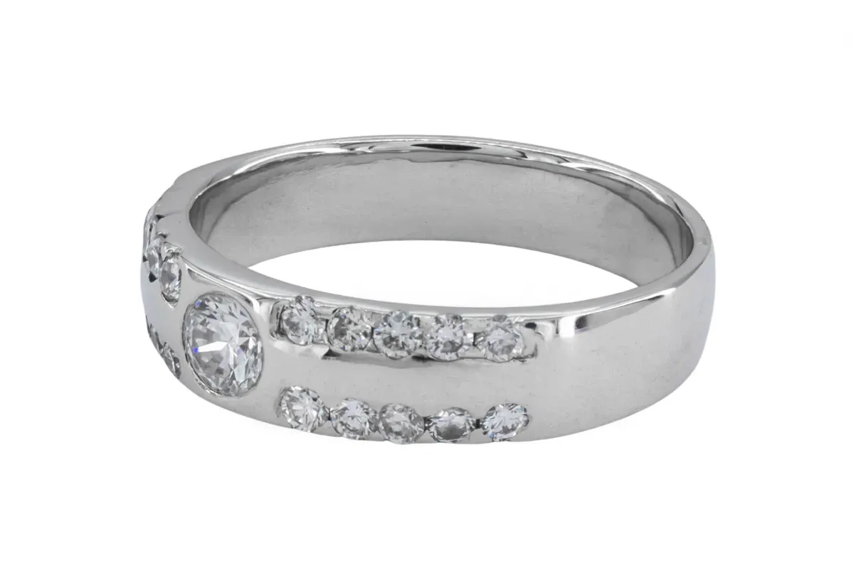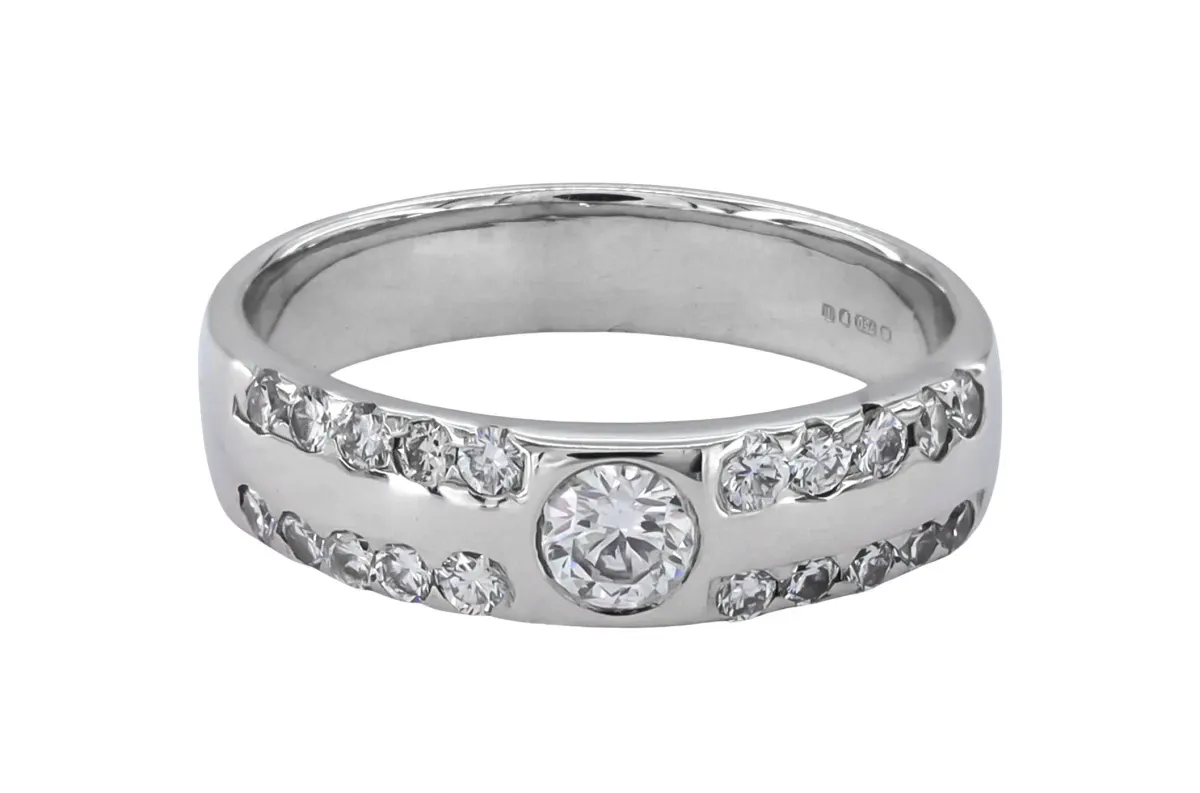 Bold Diamond Band Ring with Centre Stone in 18ct White Gold