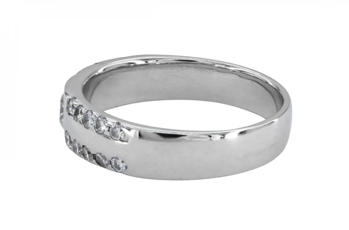 This 18ct white gold ring features a round brilliant cut 0.50cts diamonds scattered around the ring.