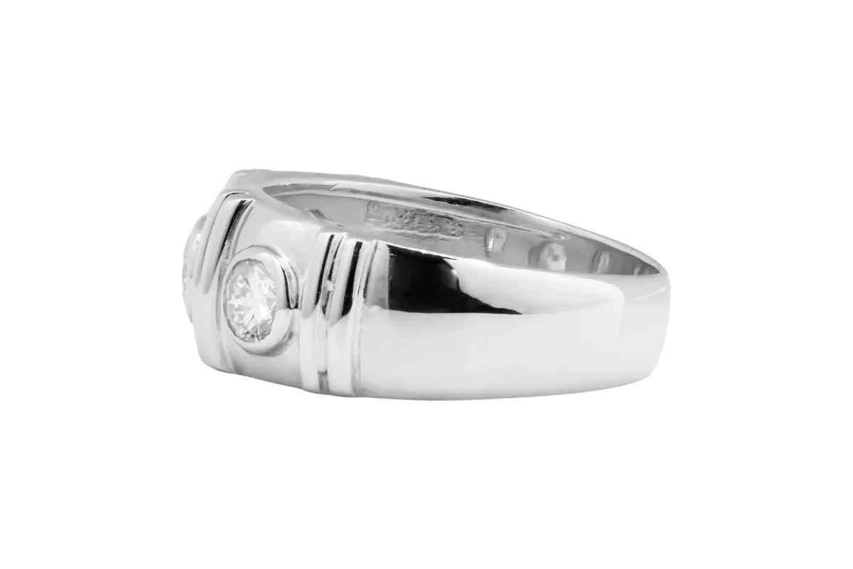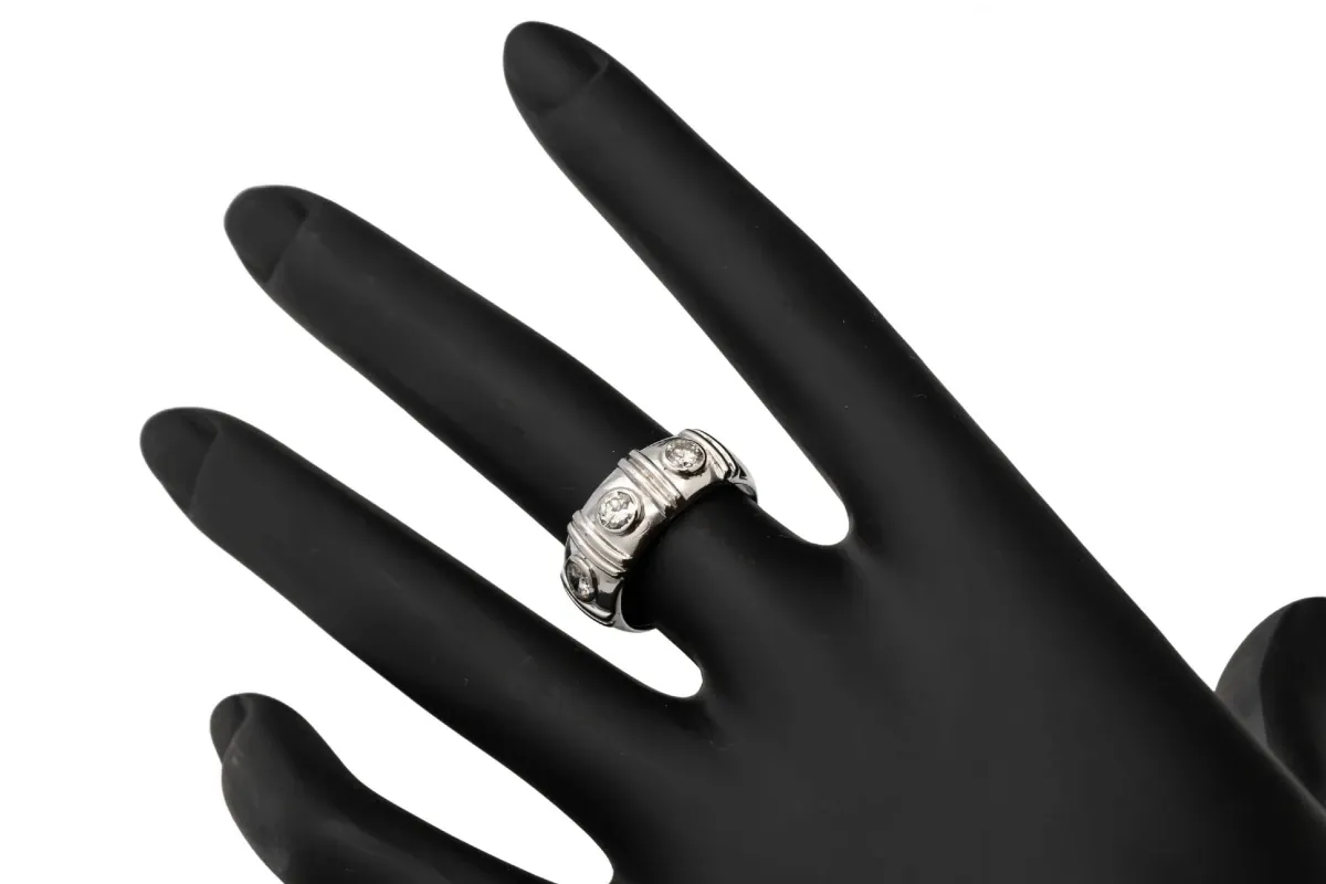 Crafted in 18ct white gold, this stunning ring features three 0.20ct brilliant-cut round diamonds, totaling 0.60ct.