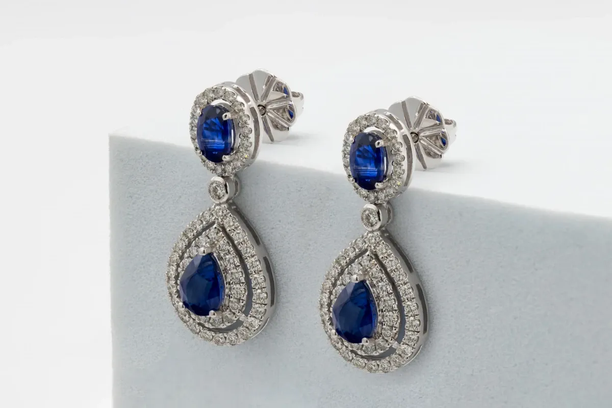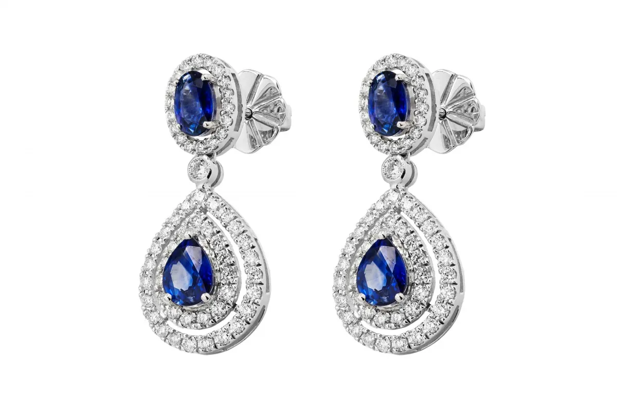 Exquisite 18ct White Gold Diamond & Sapphire Drop Earrings