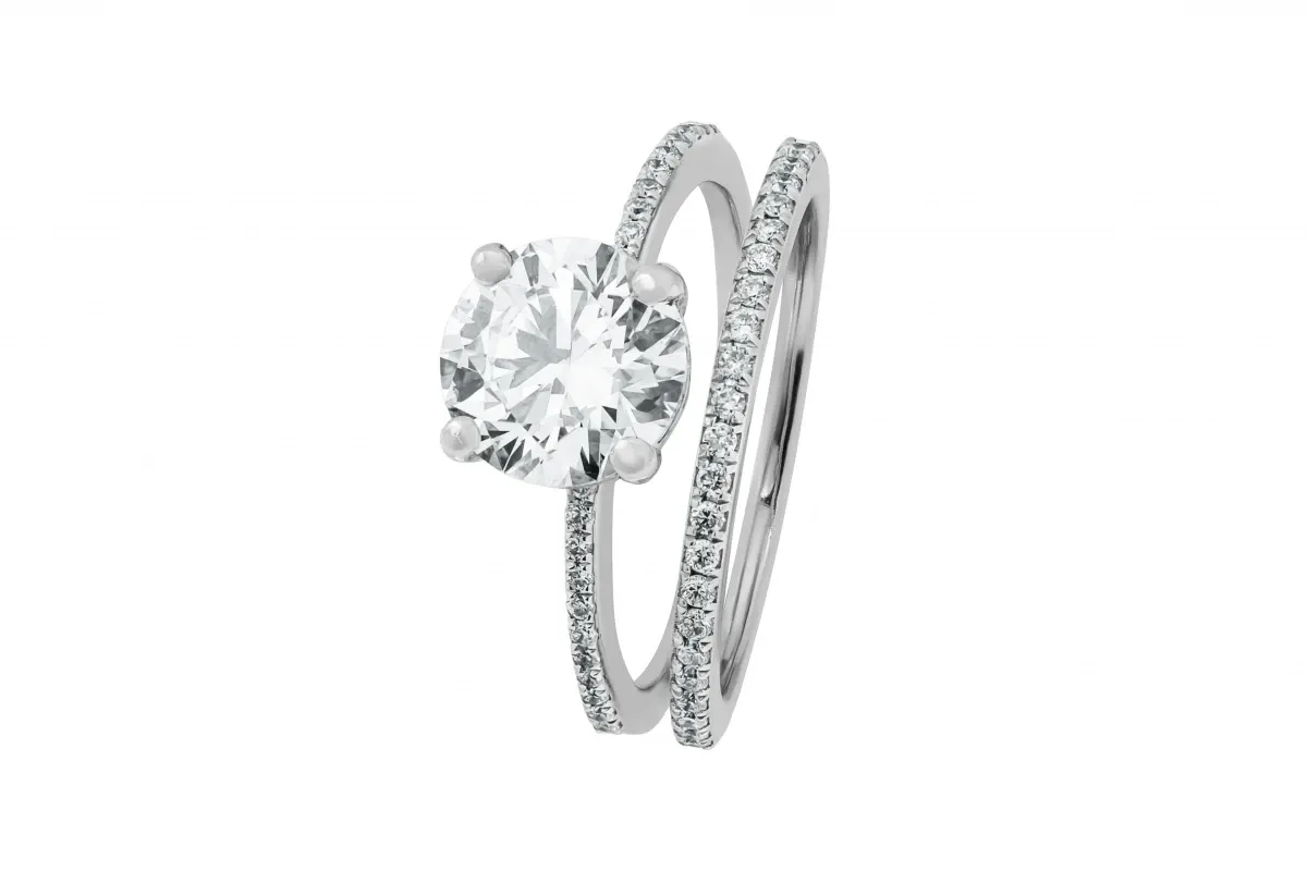 A stunning 18ct white gold diamond solitaire engagement ring set, showcasing a 1.90ct round brilliant cut centre diamond paired with a 0.45ct diamond mount for added sparkle.