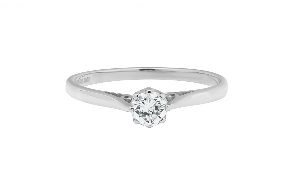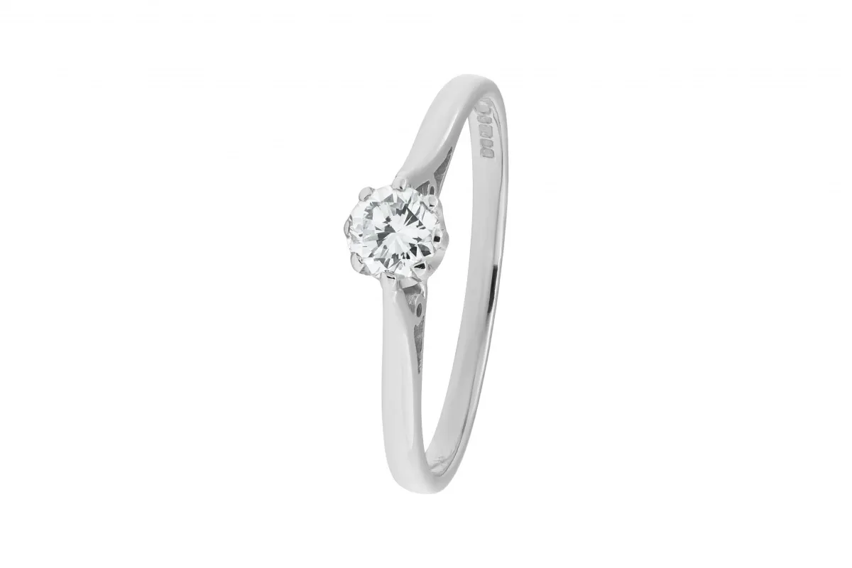 A timeless classic, this 18ct white gold diamond solitaire engagement ring features a 0.29ct round brilliant cut diamond in H colour and SI clarity.