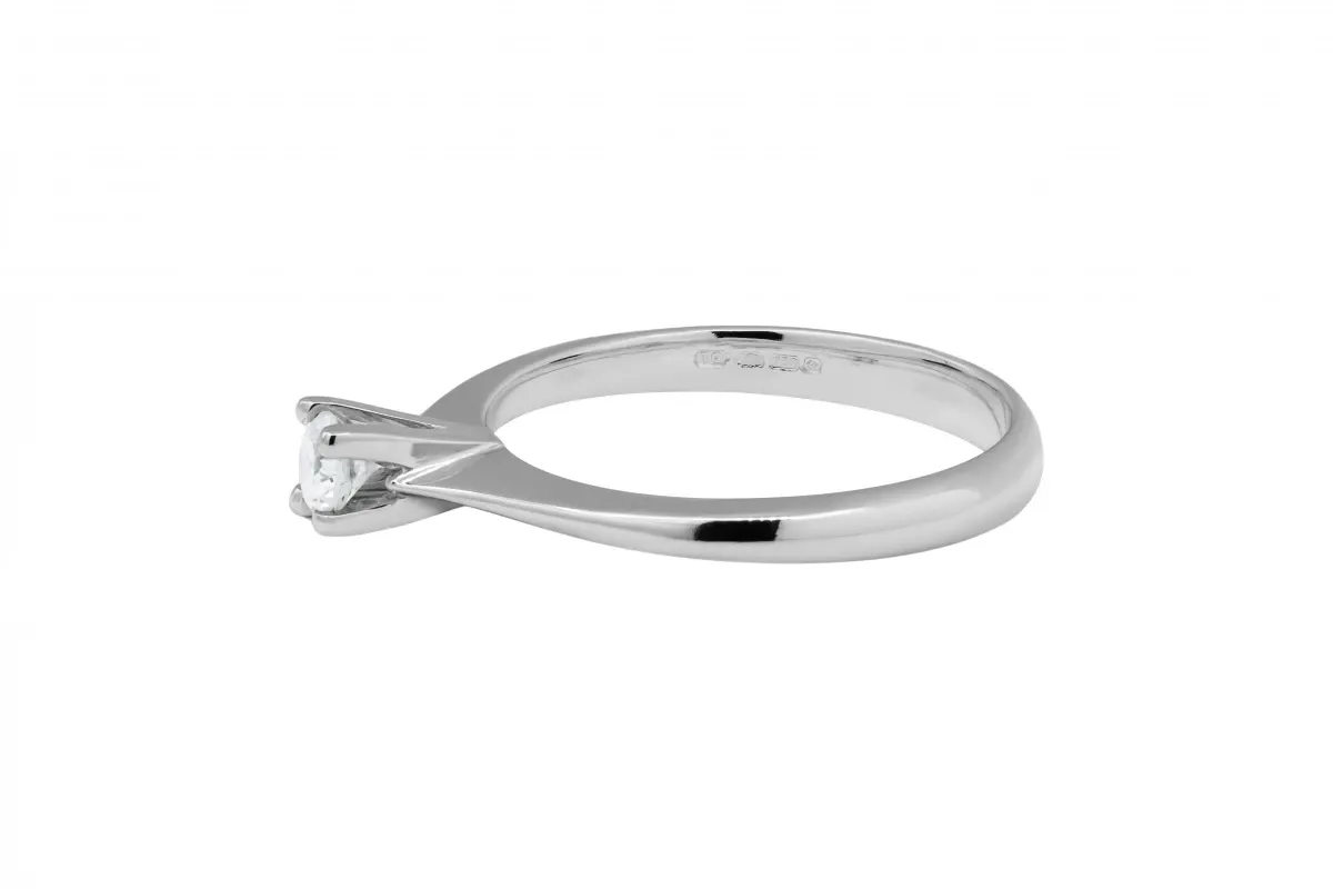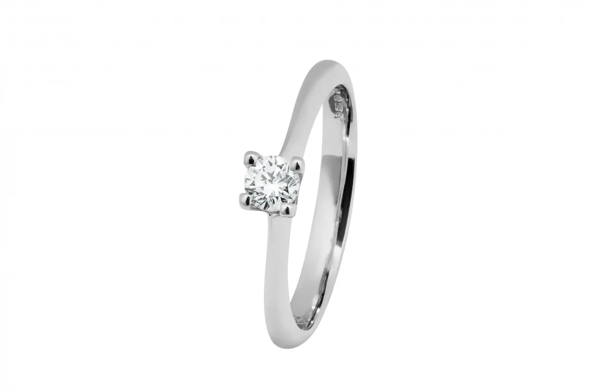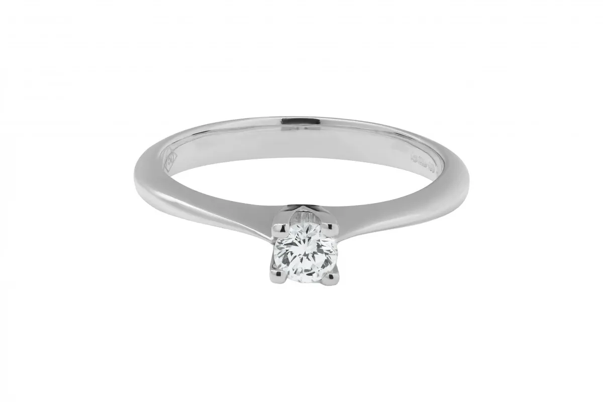 A beautifully refined solitaire engagement ring crafted in 18ct white gold, showcasing a 0.19ct round brilliant diamond.