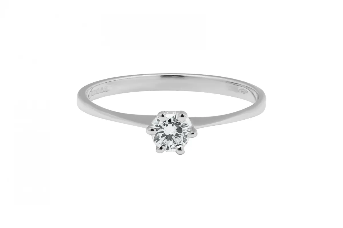 A timeless symbol of love, this elegant solitaire engagement ring is crafted in 18ct white gold.