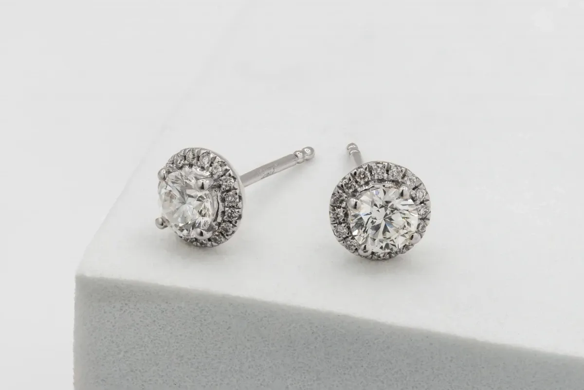 18ct White Gold Halo Diamond Stud Earrings 0.85ct