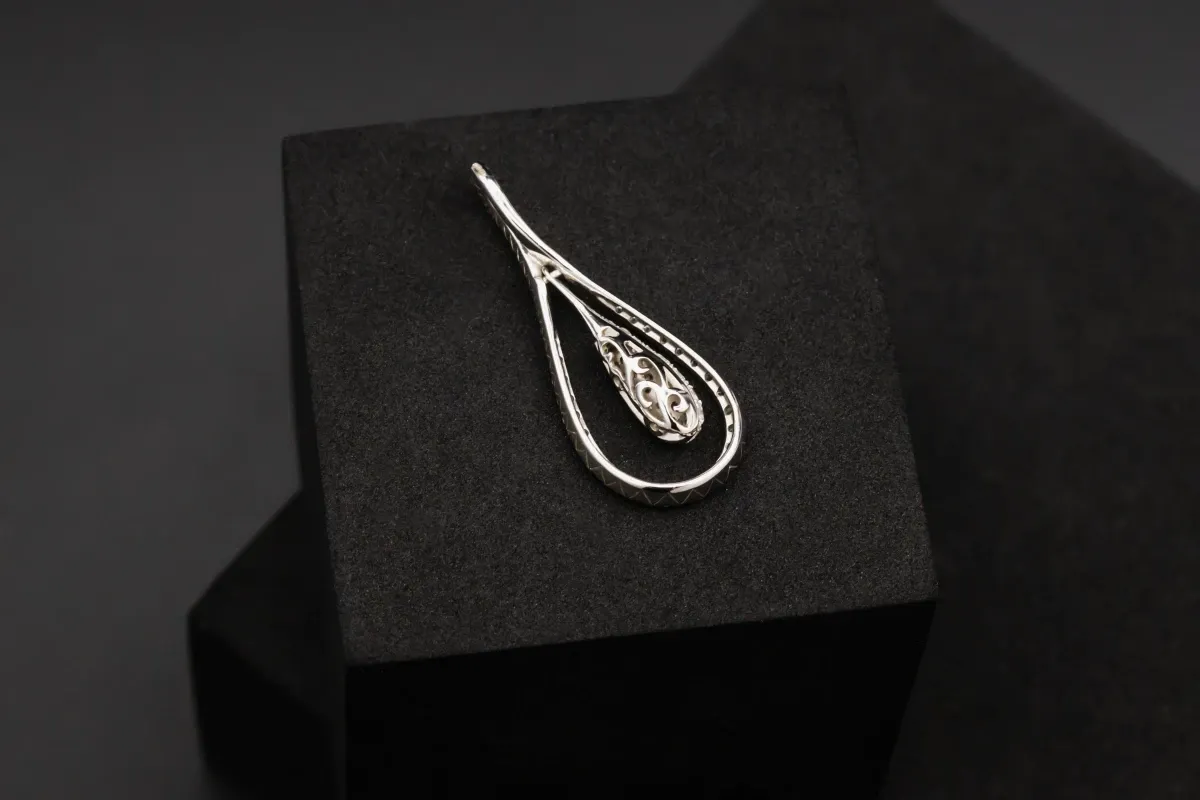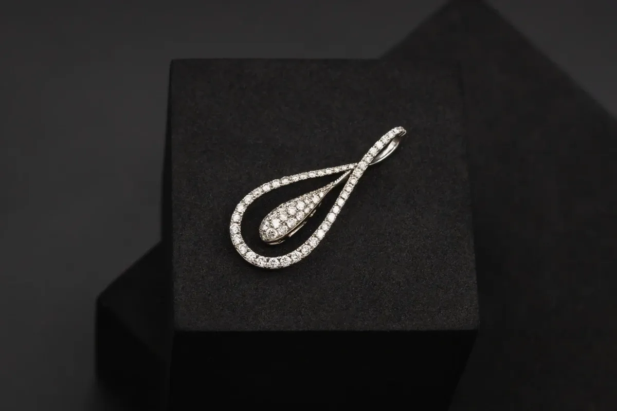 With its elegant design and captivating movement, this pendant adds a touch of sophistication and sparkle to any ensemble. Perfect for making a refined statement.