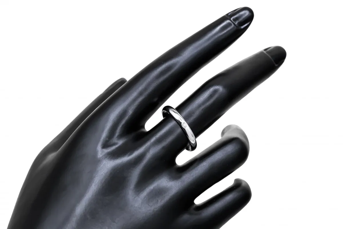 The remarkable craftsmanship of this beautiful  white gold wedding band ring is evident in the intricate tension setting which creates a truly unique look.