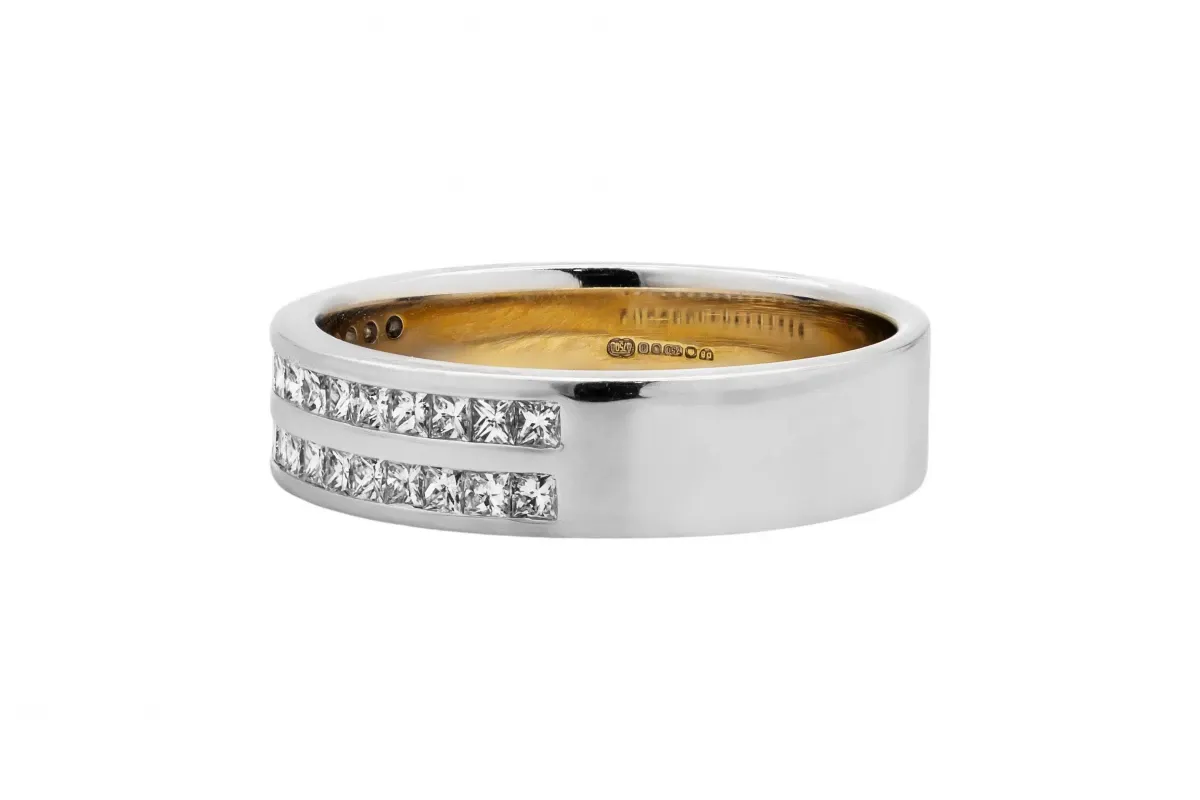 Two-Row Princess Cut Diamond Band in 18ct White & Yellow Gold 1.00ct