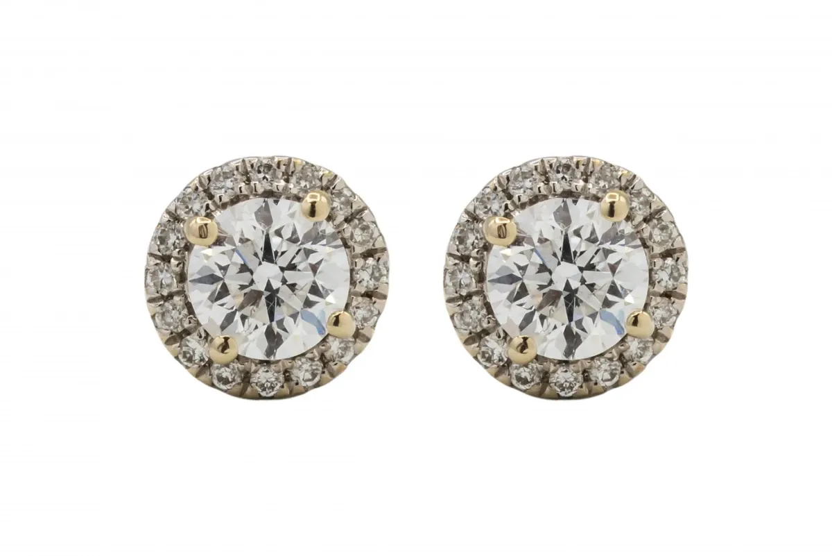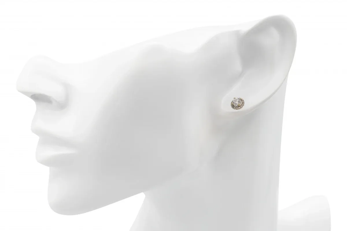 With a total carat weight of 0.35 points for the central diamond and 0.15 points for the surrounding halo diamonds, these studs boast a combined carat weight of 0.50 points.