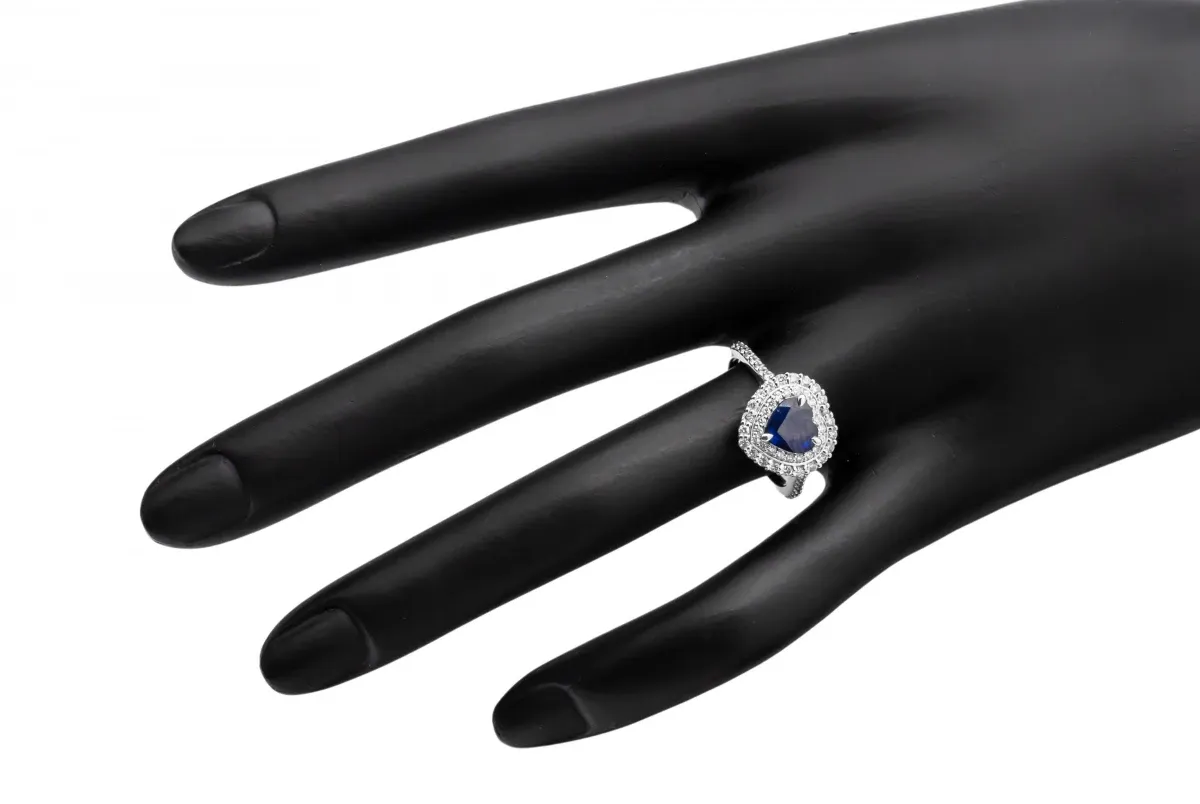 18ct White Gold Heart Shaped Halo Sapphire & Diamond Ring 0.56cts