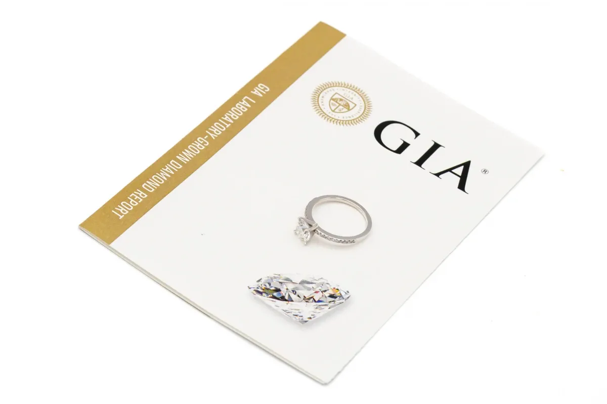 GIA certified for quality assurance, this elegant piece is a size L 1/2, weighs 2.8g, and boasts G colour and VS1 clarity, offering exceptional sparkle and sophistication.