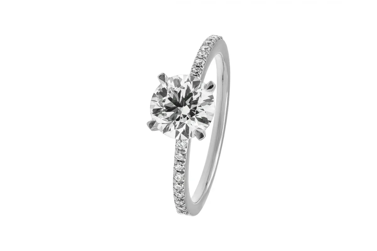 A timeless 18ct white gold lab-grown diamond engagement ring featuring a 1.30ct brilliant round cut centre diamond, surrounded by a 0.14ct diamond mount, bringing the total carat weight to 1.44ct.