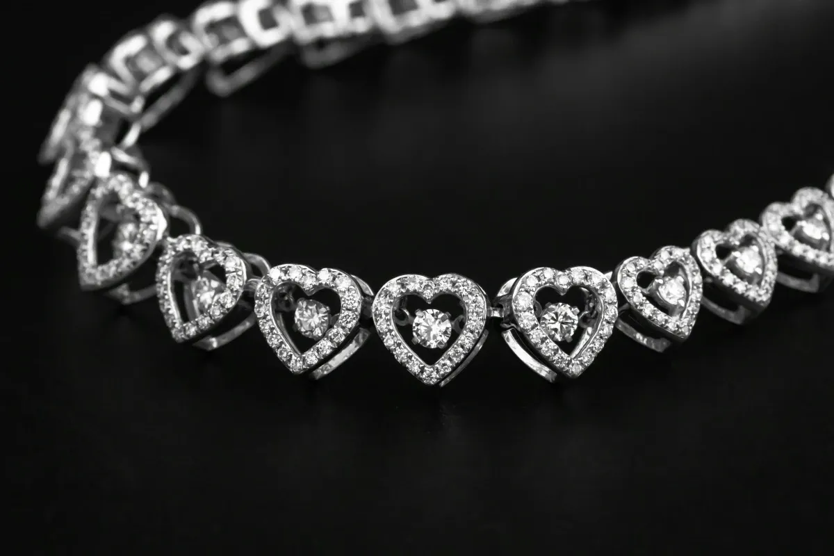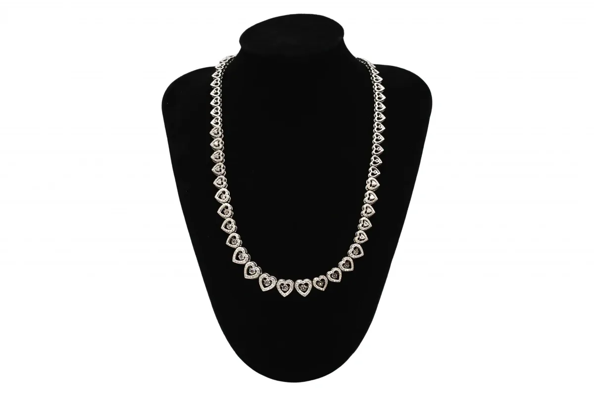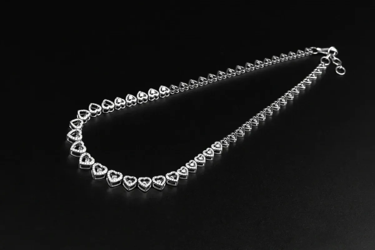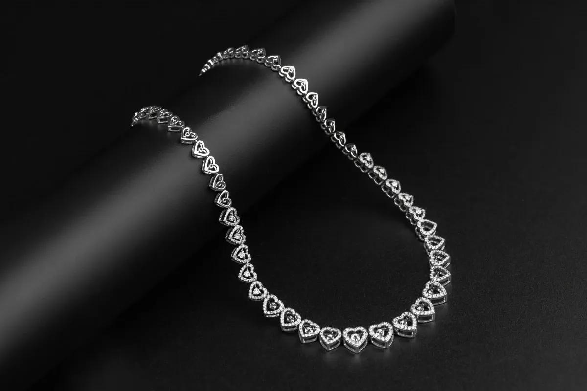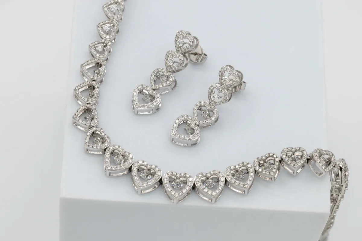 This elegant 18ct white gold jewellery set features a dazzling heart-shaped necklace set with 3.85ct lab-grown diamonds, paired with matching earrings totalling 1.36ct.