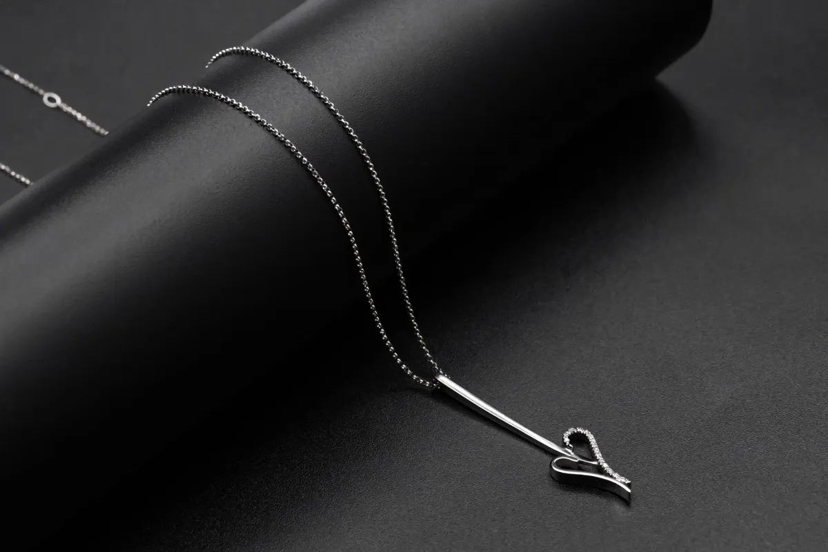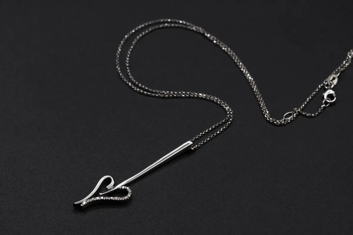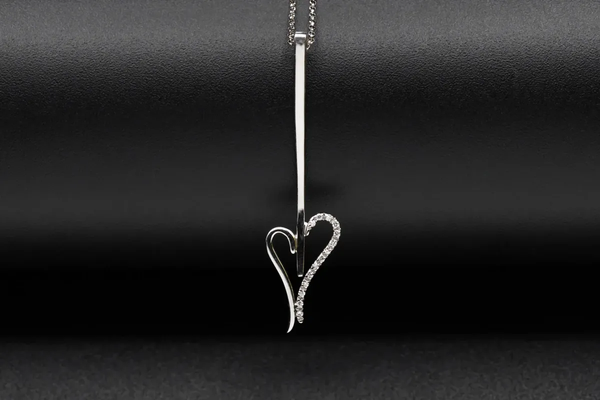 The heart-shaped pendant, crafted from 18ct white gold, exudes sophistication and romance. Adorned with sparkling diamonds totaling 0.14ct. Weighing 5g.