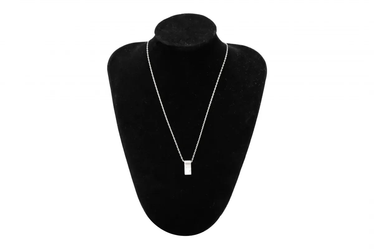 The pendant, fashioned from lustrous 18ct white gold, features a sparkling diamond weighing 0.04ct. With a length of 18 inches, this necklace is designed to sit gracefully on the neckline. Weighing 5g.