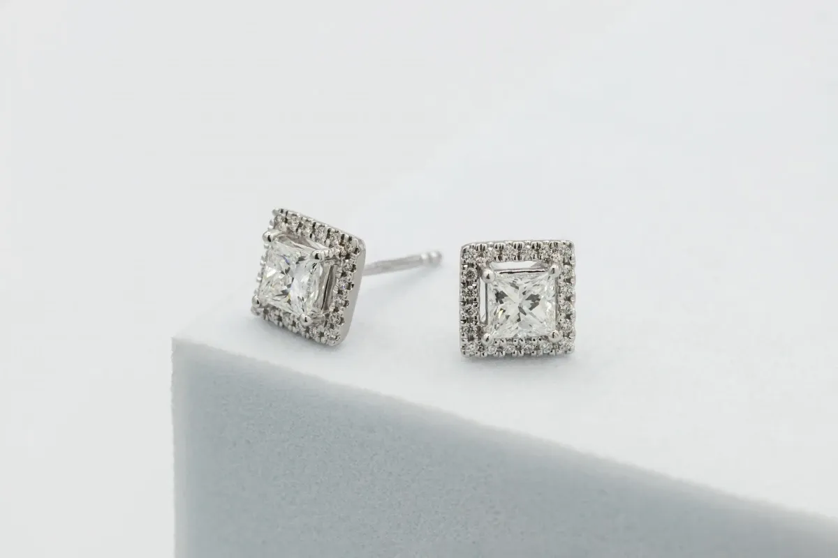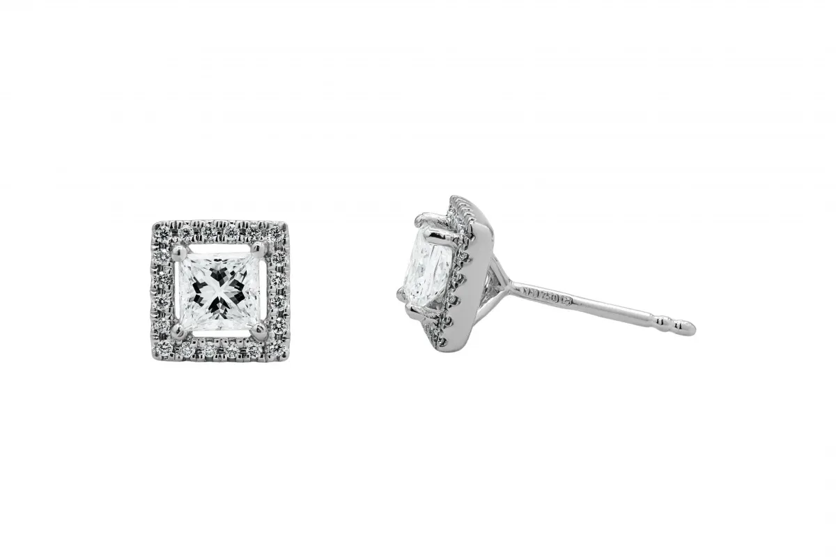 These luxurious 18ct white gold stud earrings feature a stunning pair of princess cut diamonds, totalling 0.81ct. Graded E colour and VVS1 clarity with a GIA Certificates.
