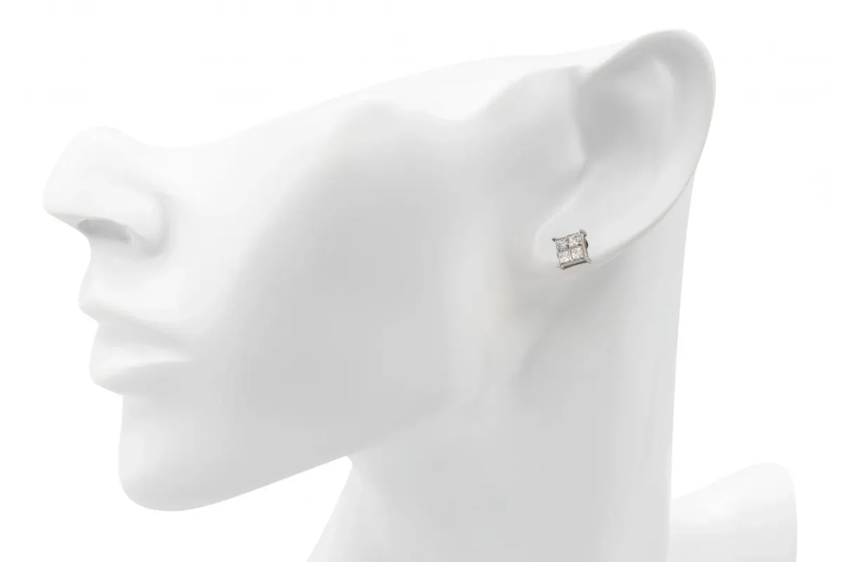 18ct White Gold Princess Cut Diamond Stud Earrings 1.01ct
